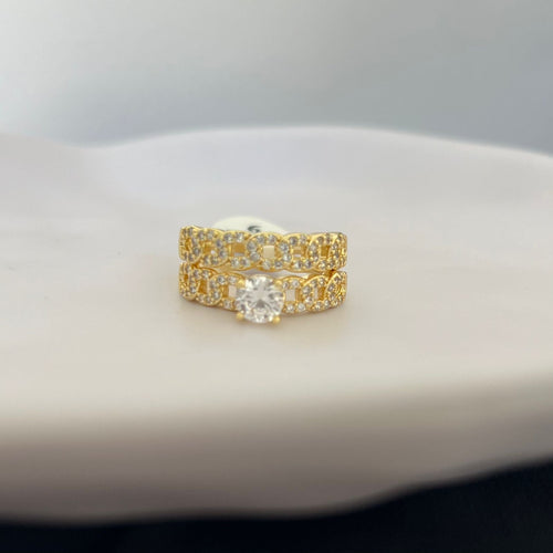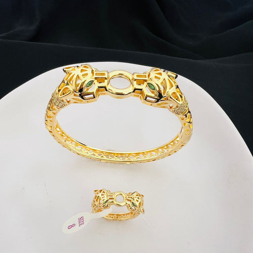 Sets - 2 pieces bracelet and ring size 7/8 two head zircon stones