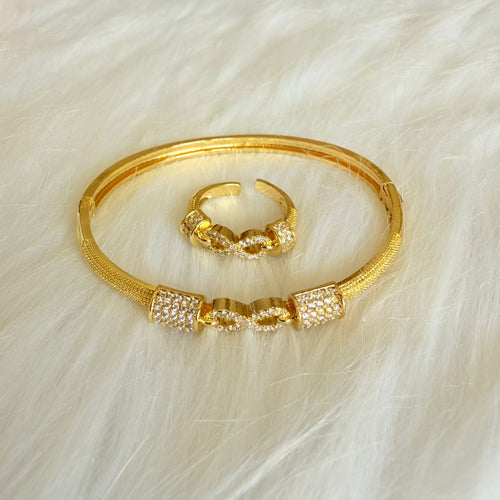 Sets - 2 pieces bracelet and ring free size zircon infinity