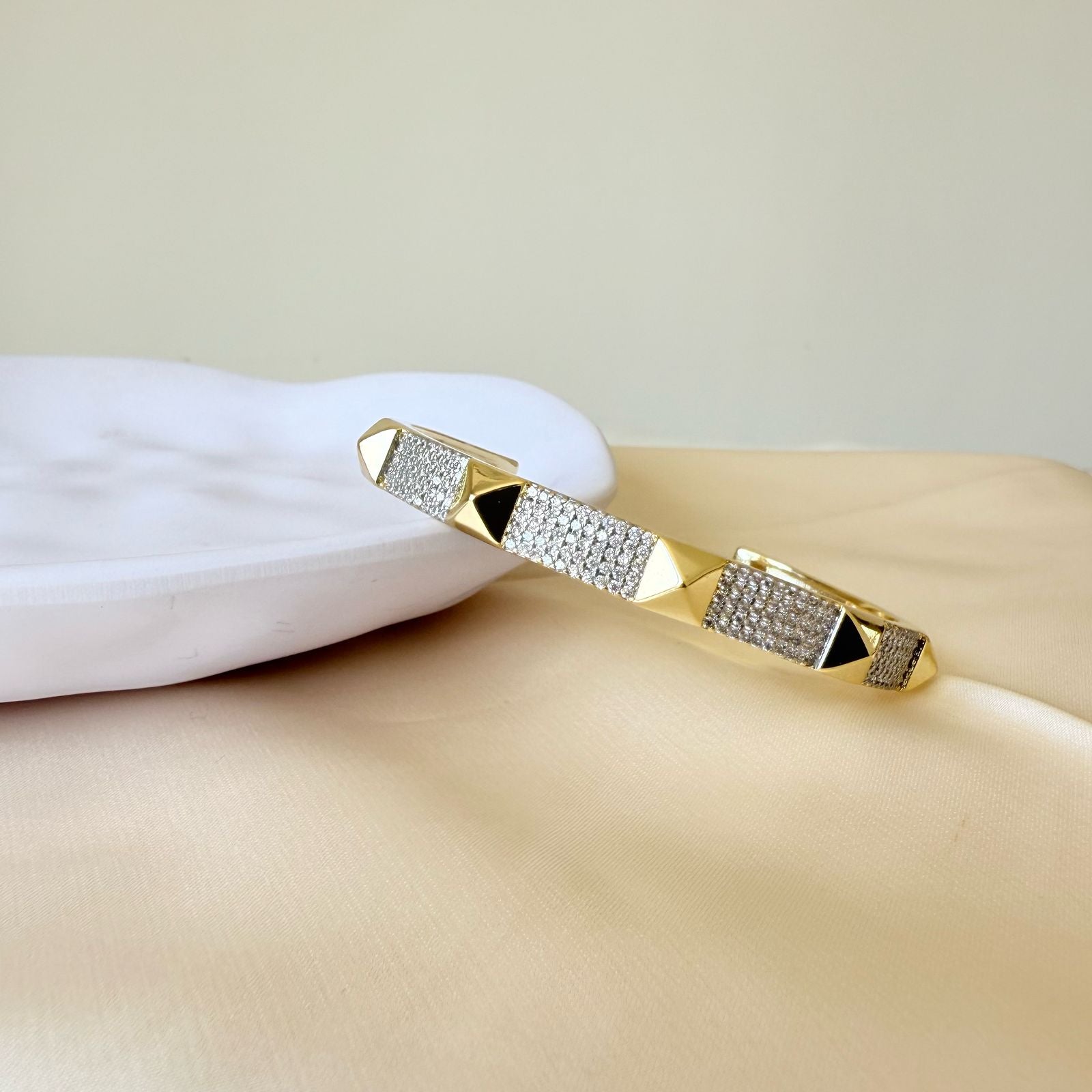 • Load image into Gallery viewer, Bracelet - Gold-plated open bangle pyramid stud