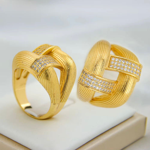 Ring size 7/8/9 - Gold two ring wavy zircon