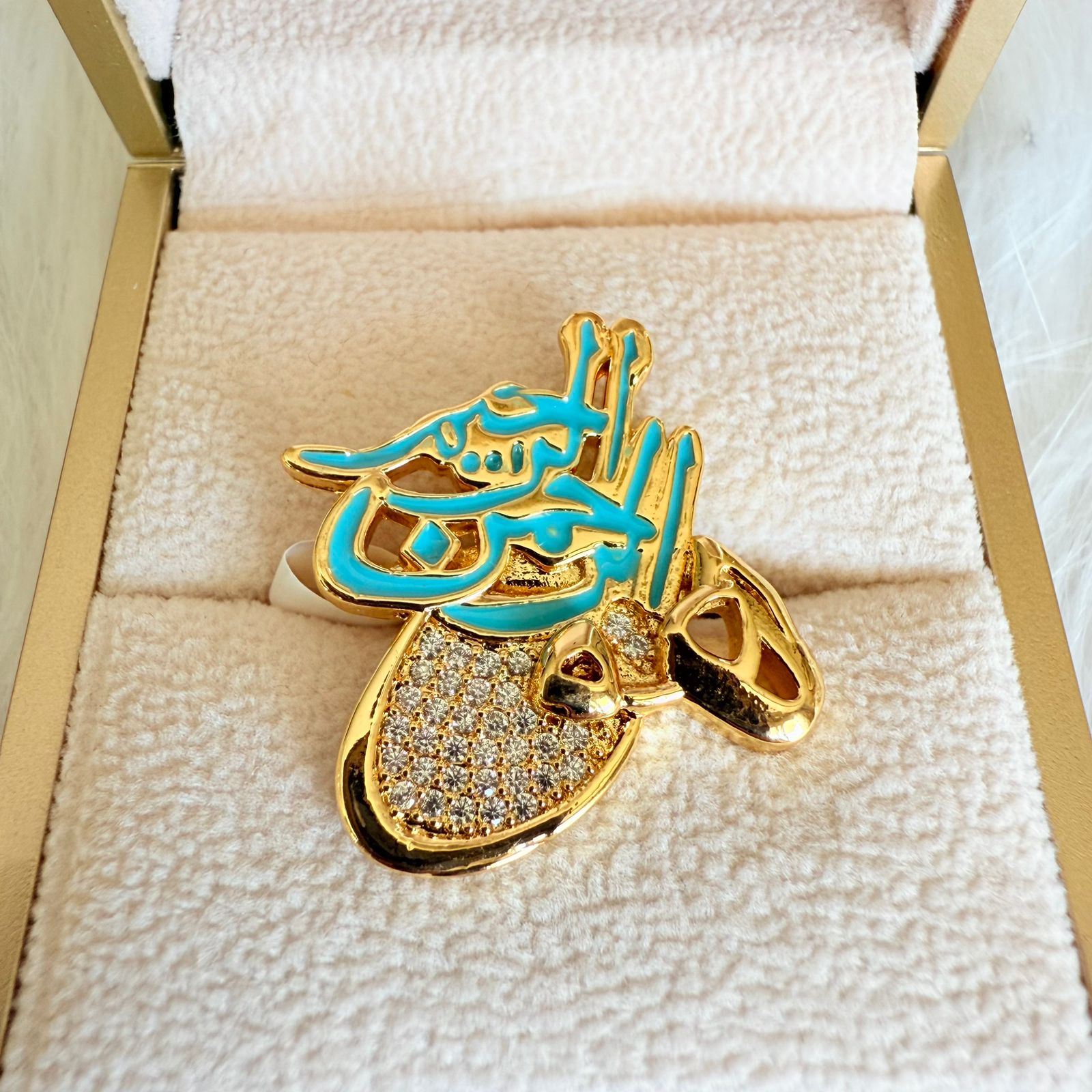 Ring - Gold size 7/8/9 ring turquoise hwa alra7man alra7em