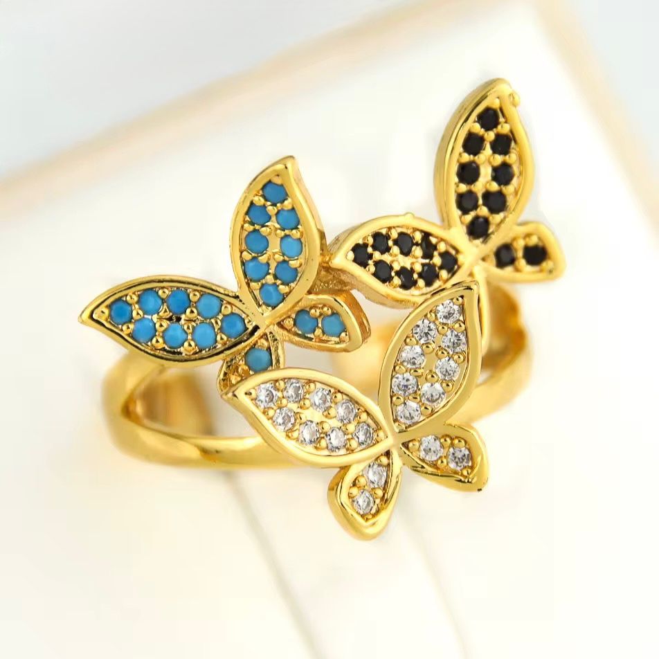 Ring size 6/7/8/9 - Gold coloured zircon butterflies