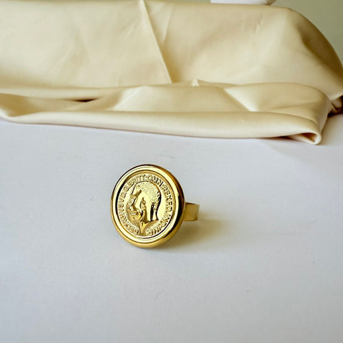 Ring size 7/8/9 - Gold zigzag ring coin zircon
