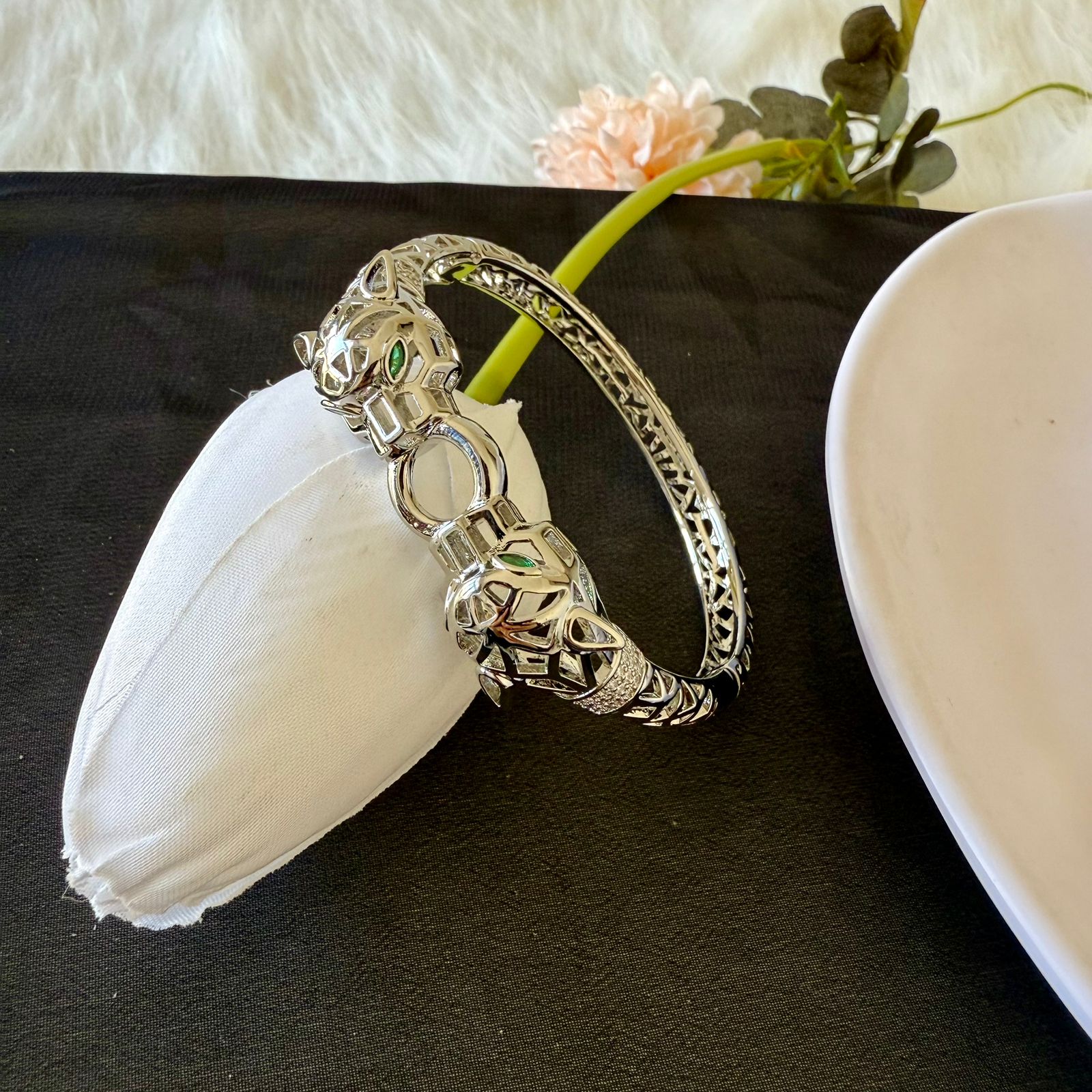 • Load image into Gallery viewer, Bracelet - Silver zircon two head green eye