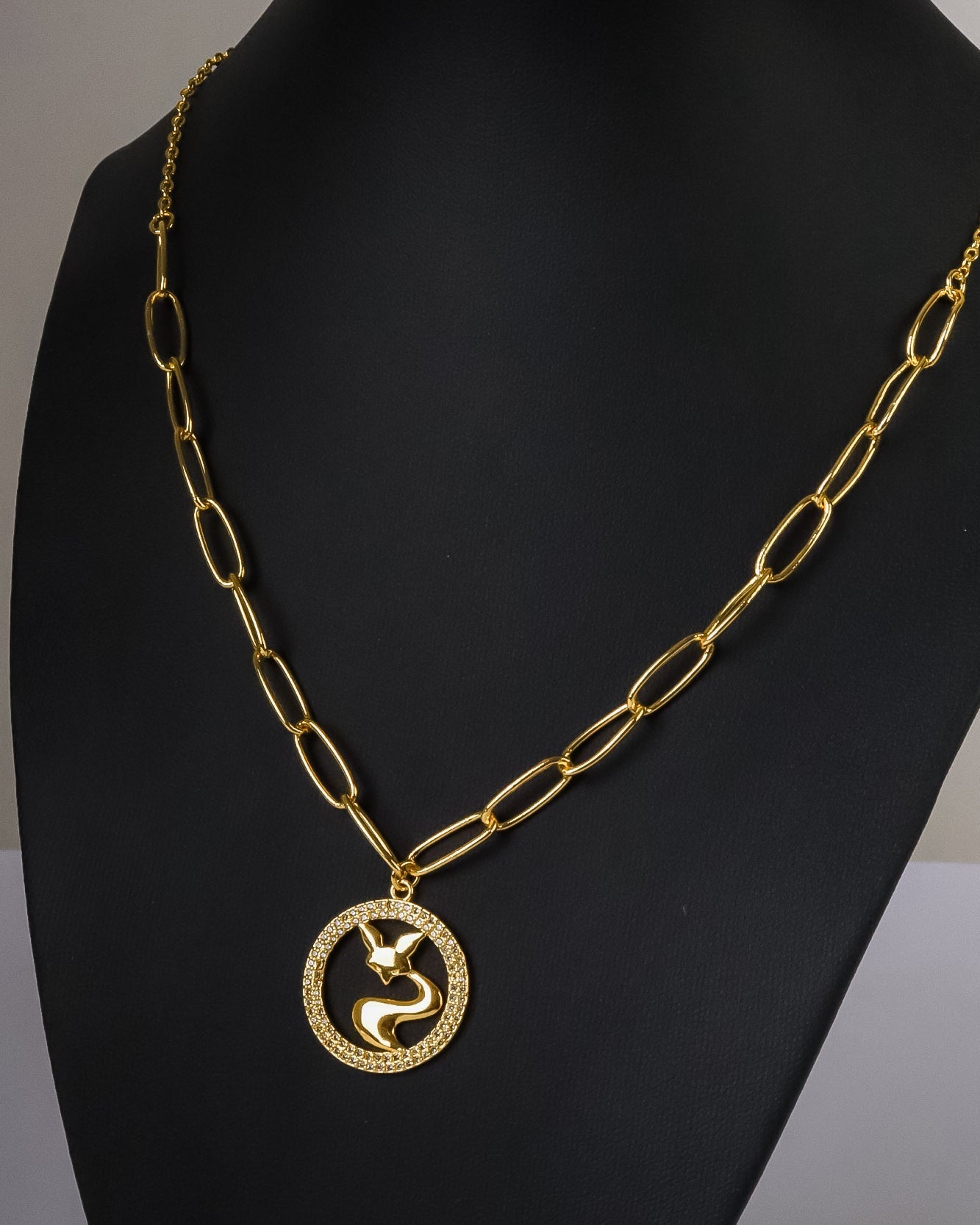 Necklace - Gold chain with gold cat and zircon circle