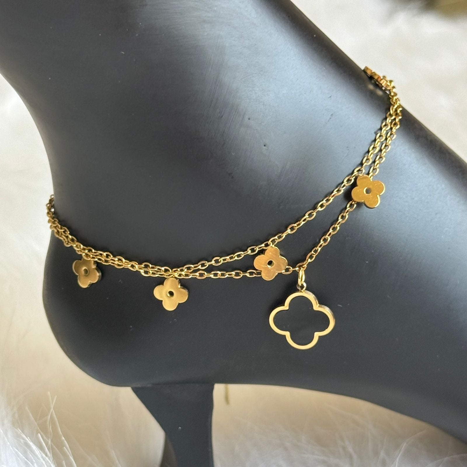 • Load image into Gallery viewer, Anklet - stainless steel gold small clovers
