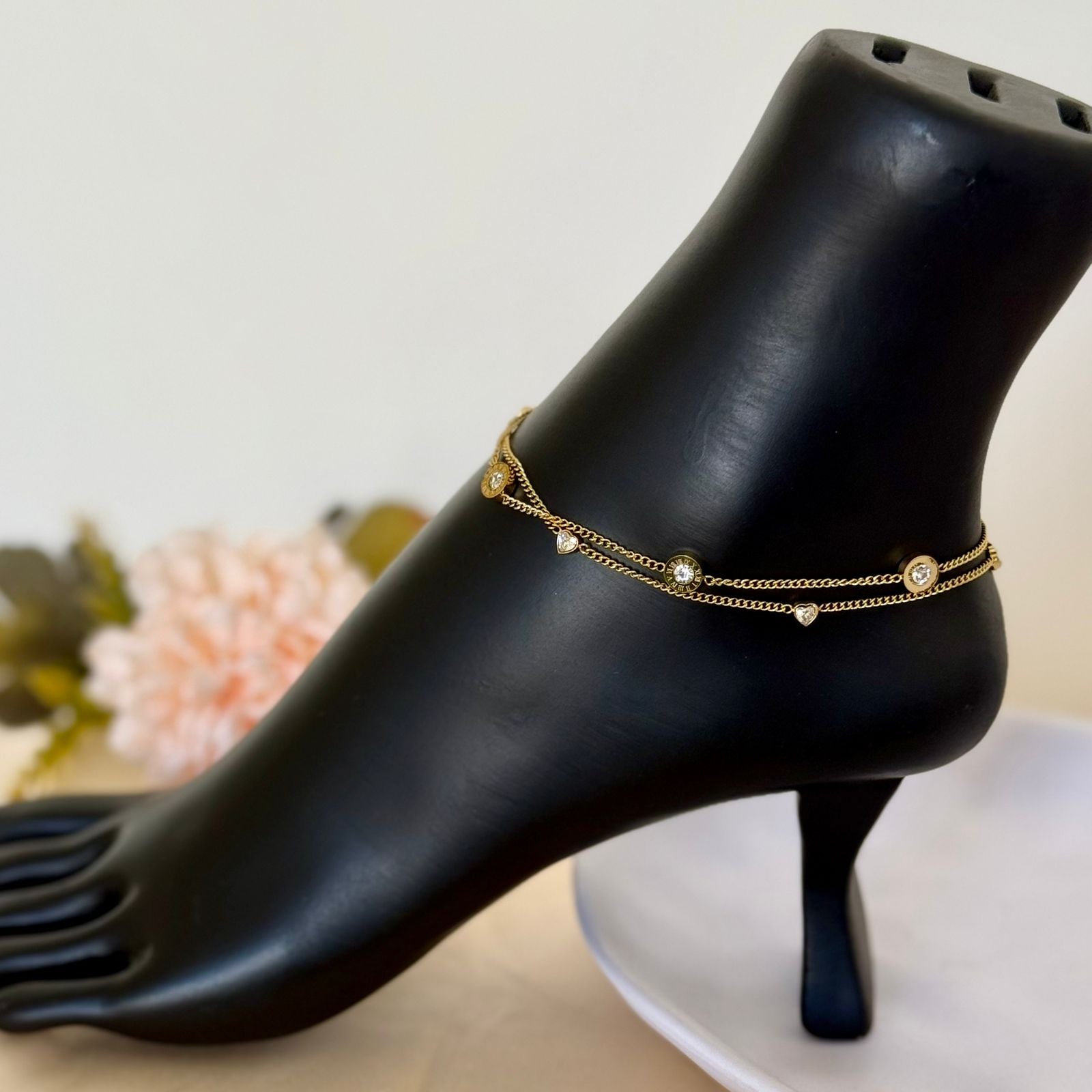 • Load image into Gallery viewer, Anklet - stainless steel heart and circle stones