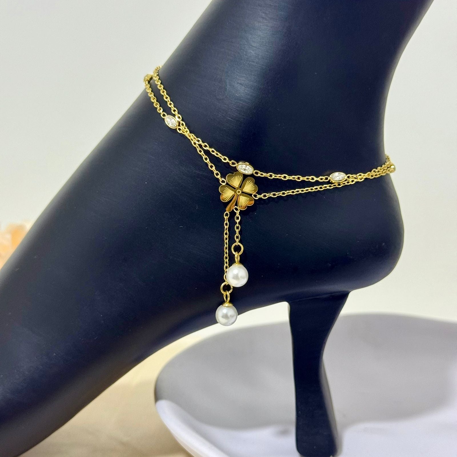 • Load image into Gallery viewer, Anklet - stainless steel gold flower with lolli