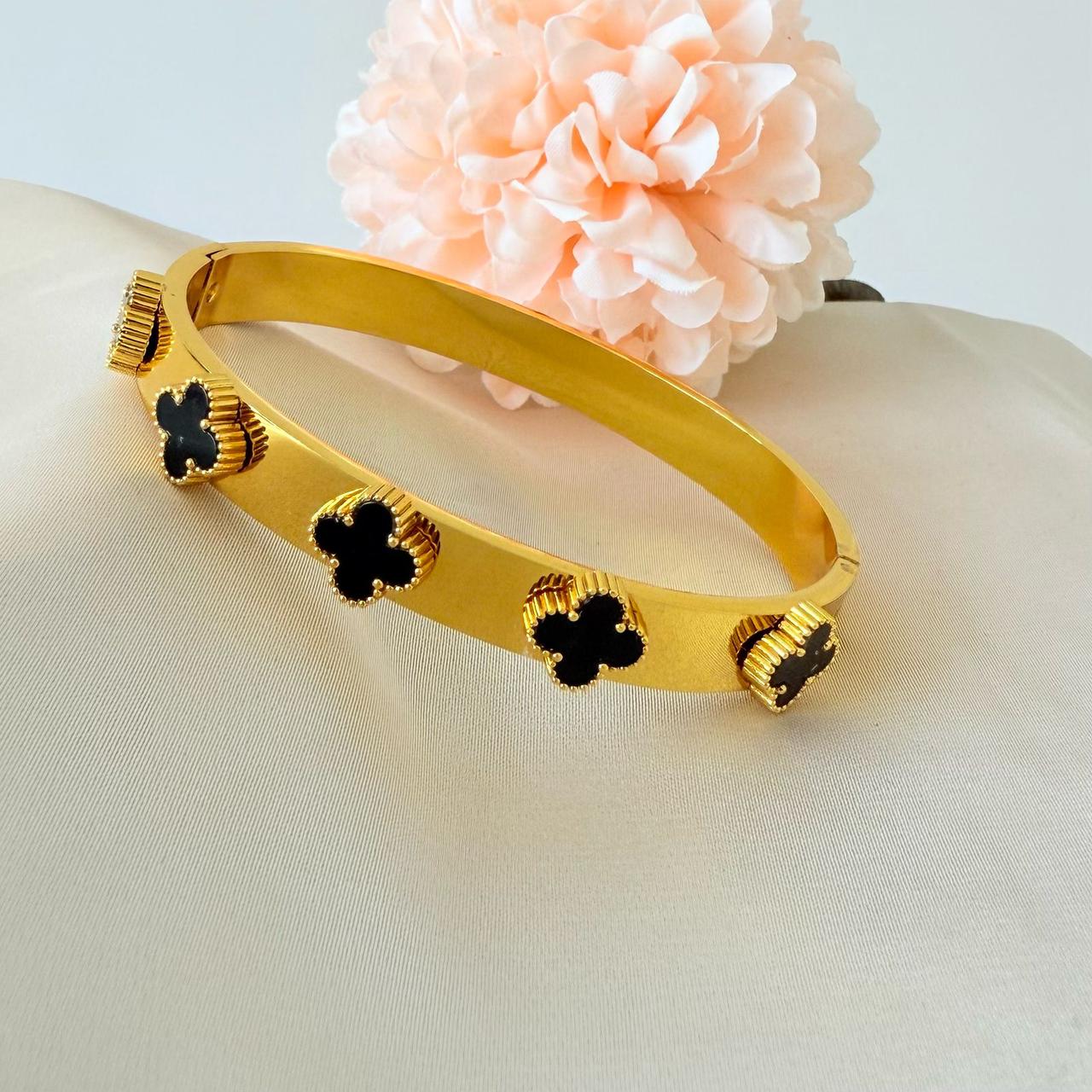 • Load image into Gallery viewer, Stainless steel - Gold simple bangle with black clovers
