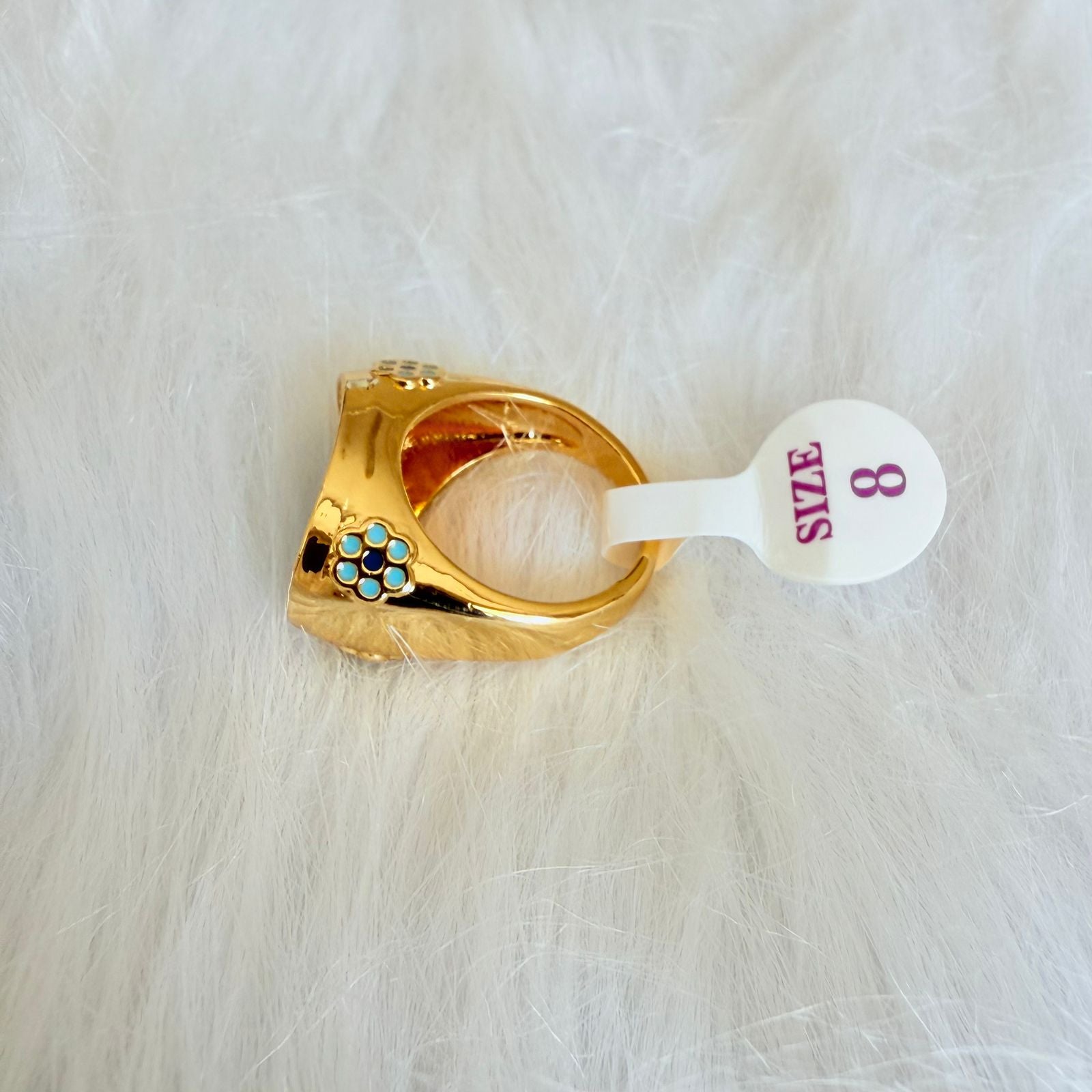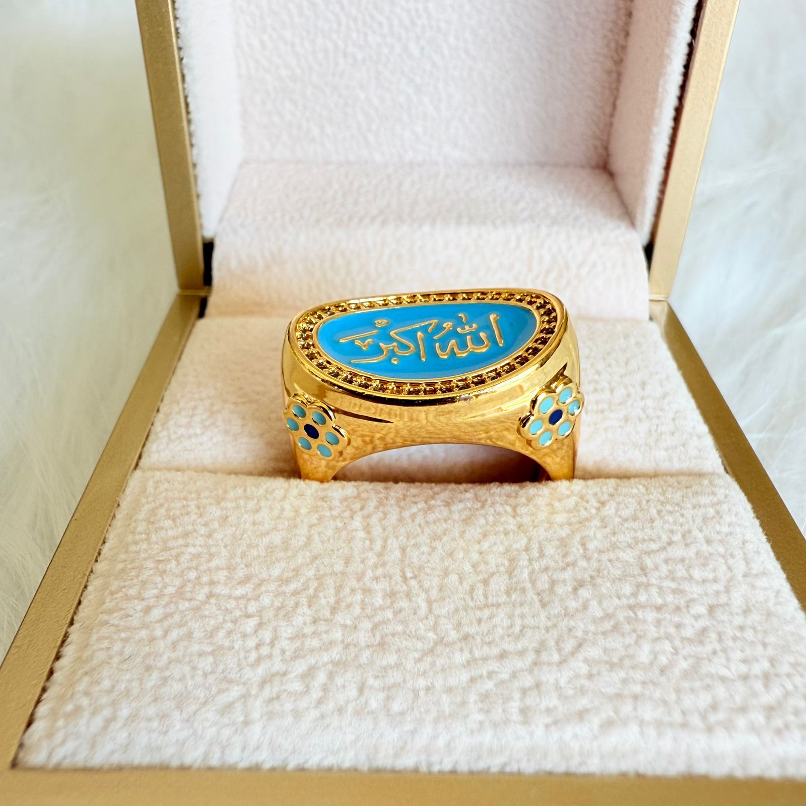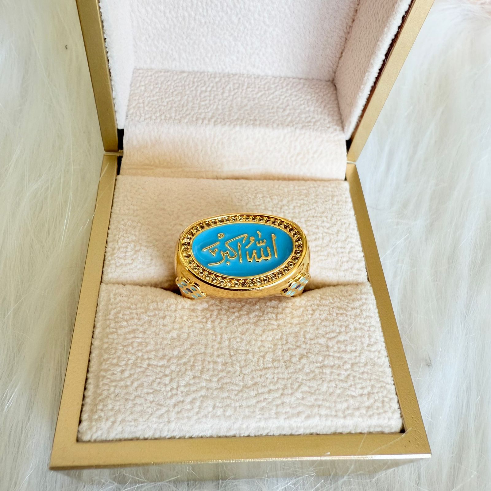 Ring - Gold size 8/9 ring turquoise allah akbar