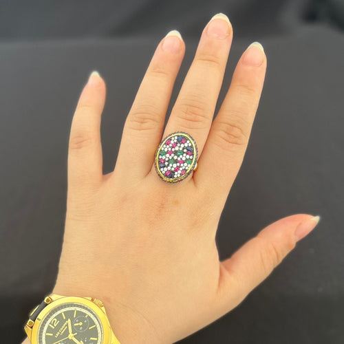 Ring - Gold ring size 7 colour oval zircon stones