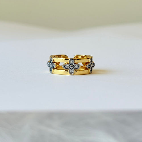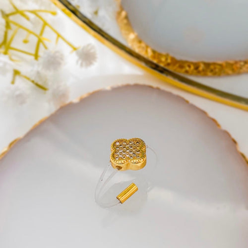 Ring - Gold-plated ring free size small clover stones