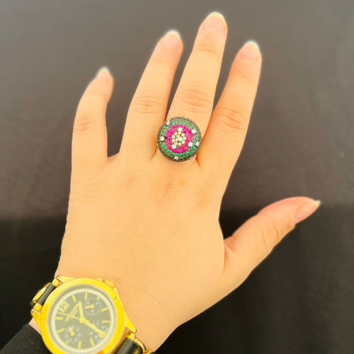 Ring - Gold ring size 7 colourful circle