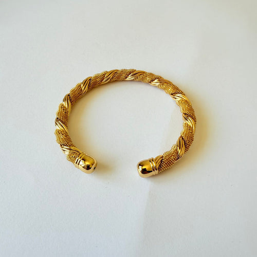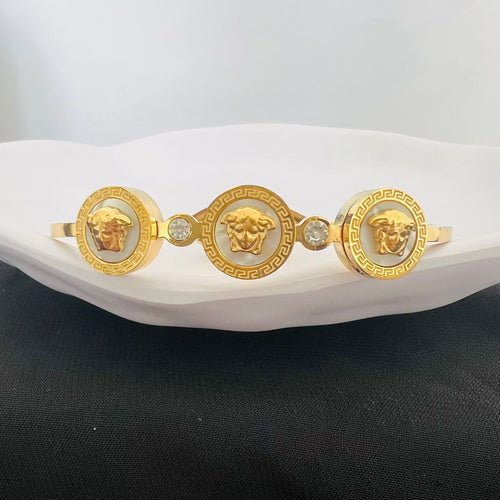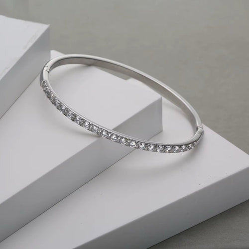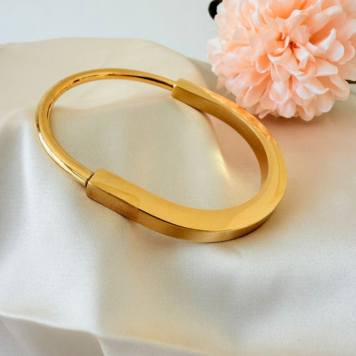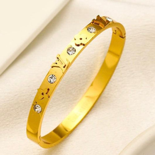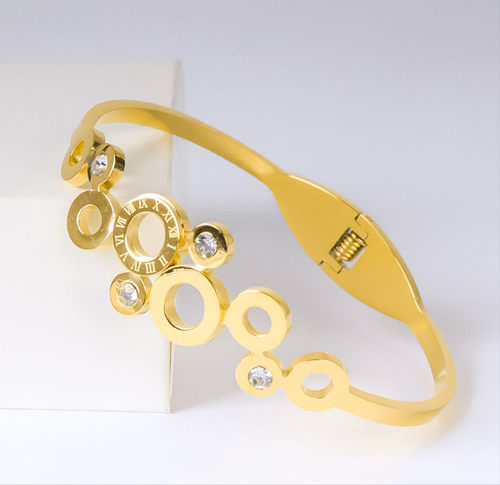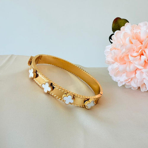 Stainless steel - Gold simple bangle with clover and zircon stones