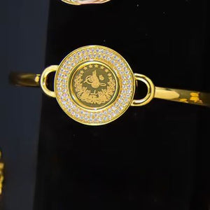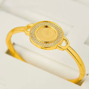 • Load image into Gallery viewer, Bracelet - Gold bangle coin circle zircon